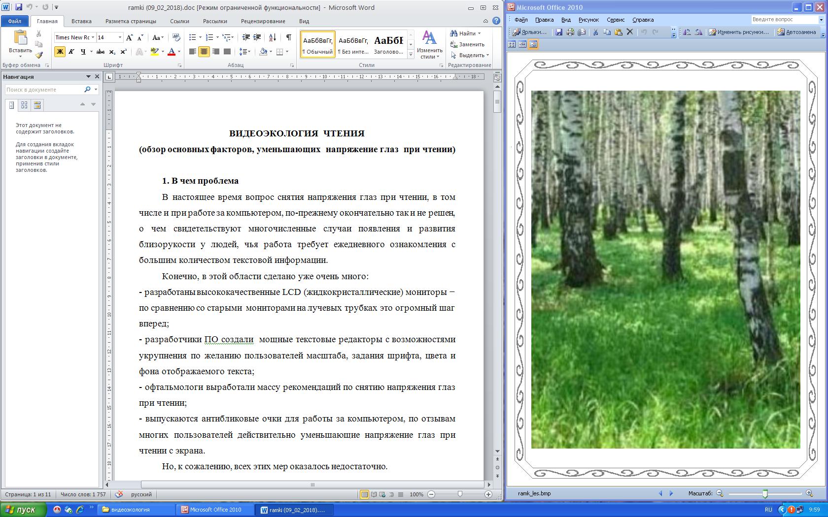 Борьба с монотонностью чтенияСогласно видеоэкологии страница текста является разновидностью