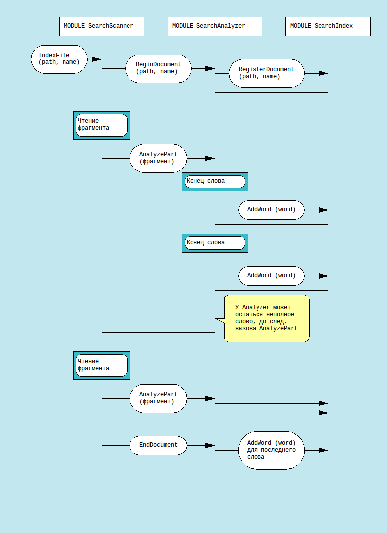 Вот явная польза таких диаграмм: достаточно тонкий момент, что последнее слово добавляется в индекс не AnalyzePart-ом, а EndDocument-ом, здесь виден как на ладони.