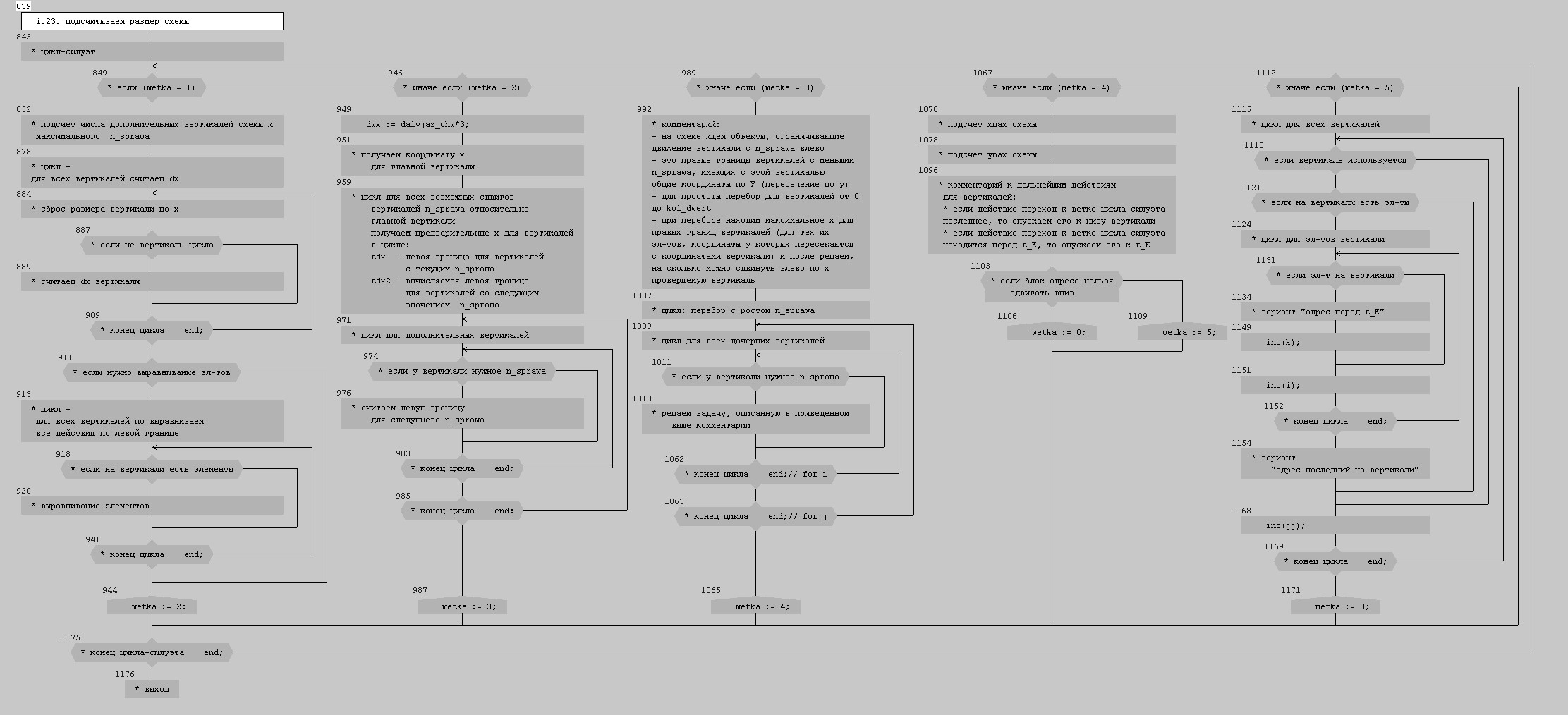 фрагменты с целью сделать отображение схемы алгоритма более удобным