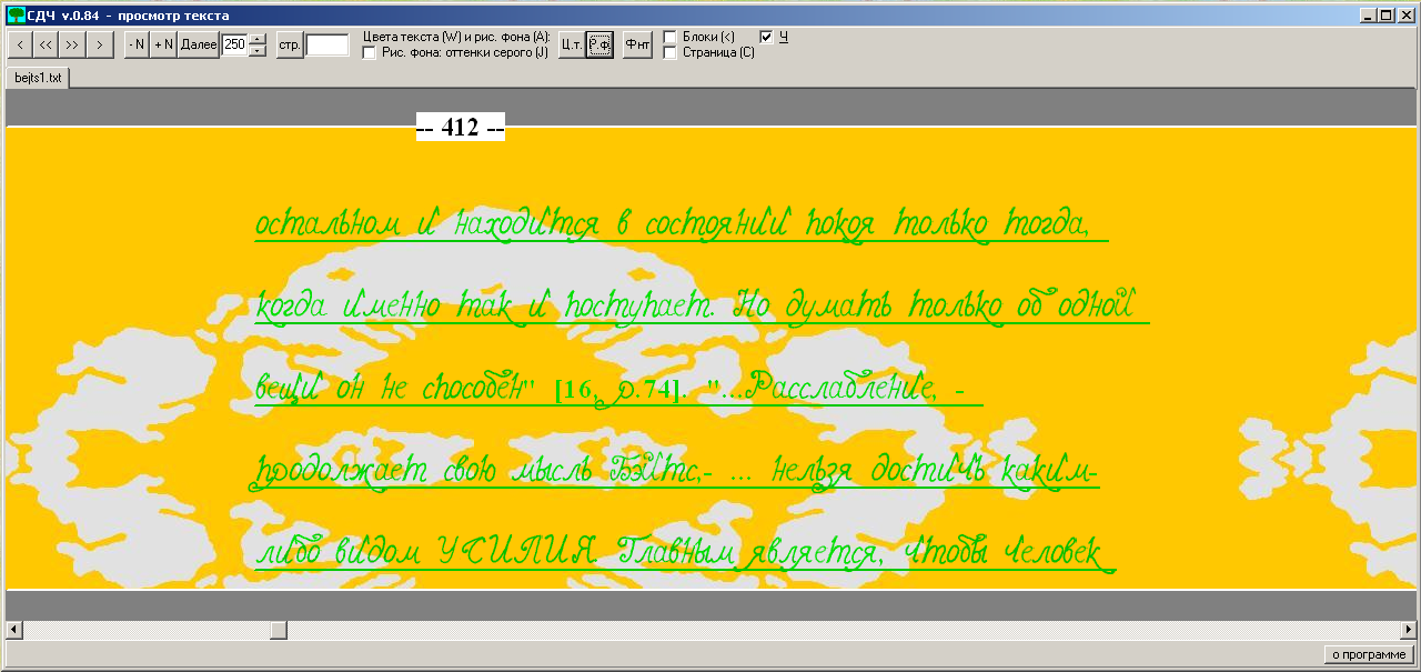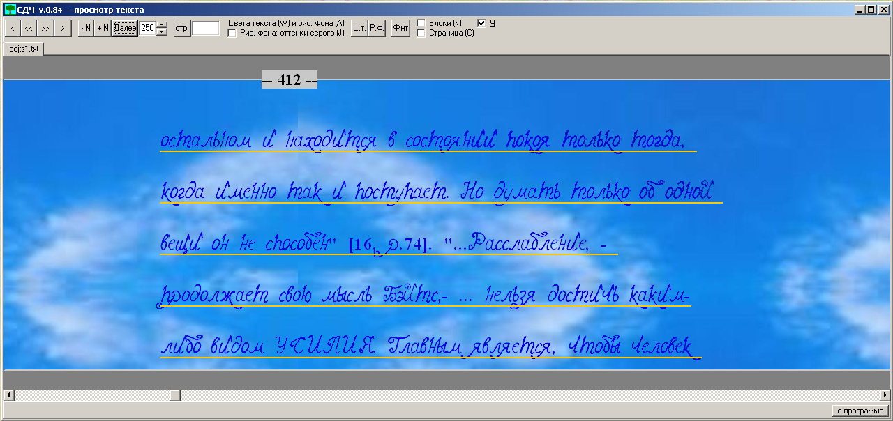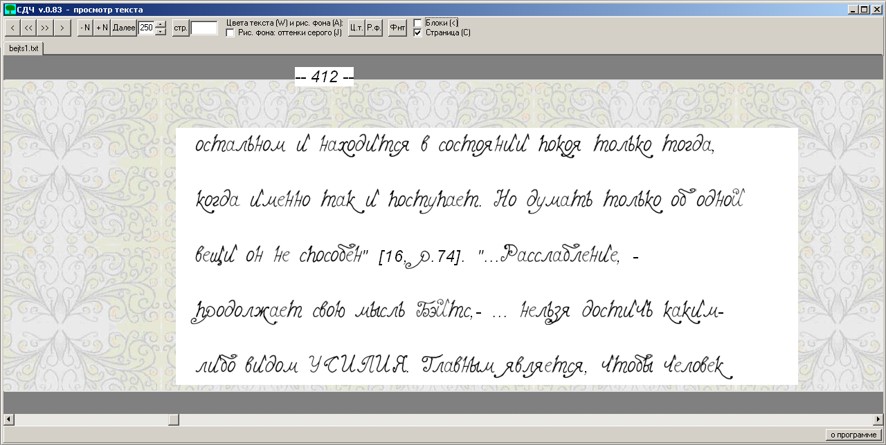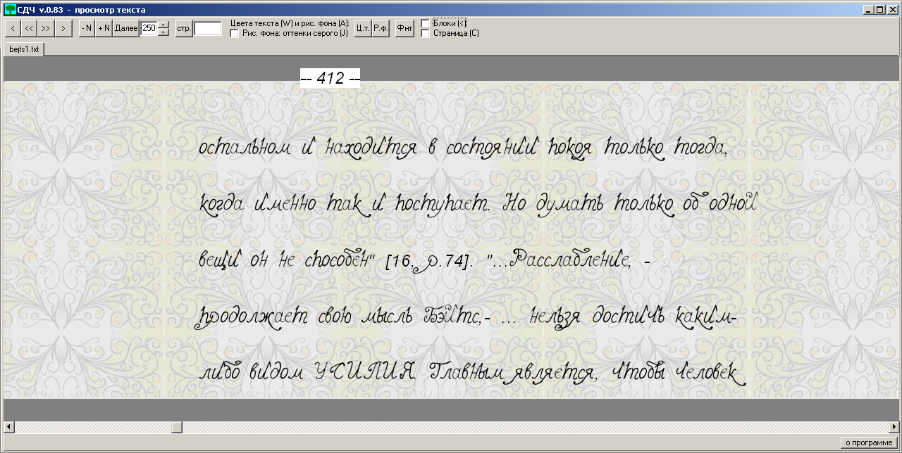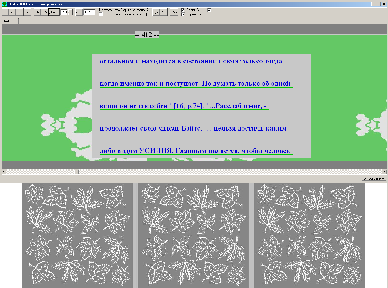 На рис. 3 приведен вид окна читалки для использующих при чтении