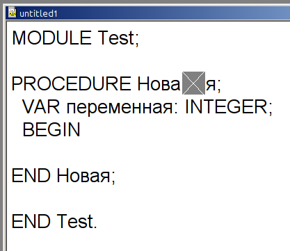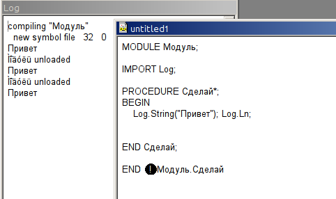 Try add this patch, DevCommanders.Scan Код: PROCEDURE Scan (VAR s: Scanner); VAR done: BOOLEAN;i:INTEGER; ch:CHAR; <<add BEGIN ..... >>add IF (s.s.type =ident) OR(s.s.type= qualident) THEN i:=0;ch:=s.s.string[0]; WHILE ch # 0X DO IF Characters.IsCyrillic(ch) THEN s.s.string[i]:=Characters.Short(ch); END; INC(i);ch:=s.s.string[i]; END; END; << END Scan; PS: the code file name,and sym file name is nonprintable in my pc, but it is workable. |