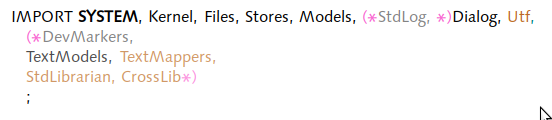 Последние две процедуры - Mark и Get - не обязательно выносить в узел ввода-вывода. Но! Если их вынести - то DevCPM вообще не будет импортировать ничего из Text и Dev!!