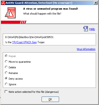 антивирус Avira выдает следующее сообщение:
