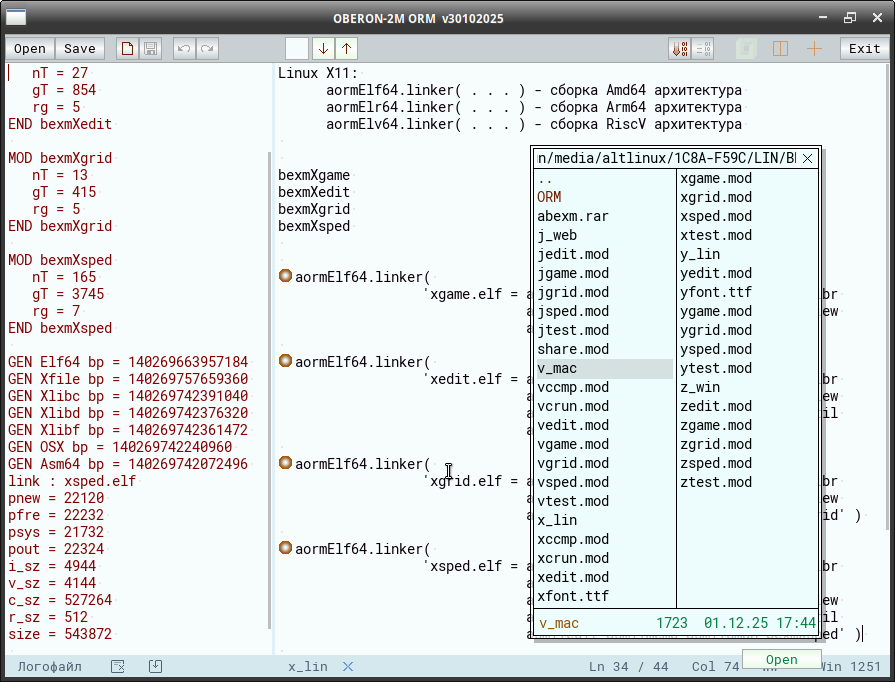 Ormcode для Linux X11 X86-64. Сборка от 30.11.2025. По подсказке SovietPony переписал таймеры, для запуска на произвольной Linux.