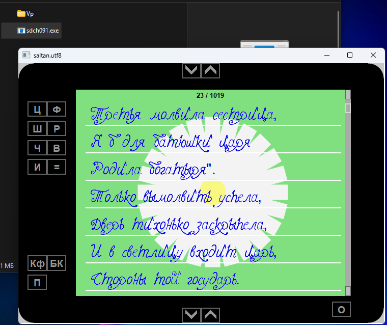 - кнопка "Ш": выбор шрифта - стандартный/myfont;