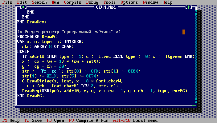 Комментарий к файлу: Снимок экрана эмулятора ГЭВМ (GEVM.Mod, включён в поставку Free Oberon)