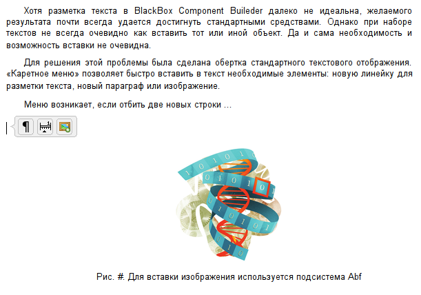 Без вставки картинок эта штука доступна в Красноярской сборке Cpc/Mod/Insert.odc. Набор инструментов расширяется по принципу подсистемы Toolbar.