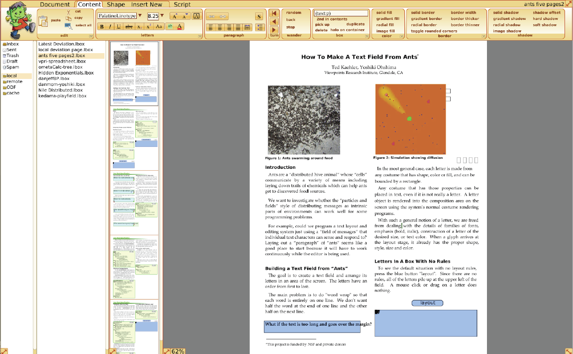 In the STEPS system, this document is live: the examples are actually runnable demos; the code shown is changeable and testable, etc.