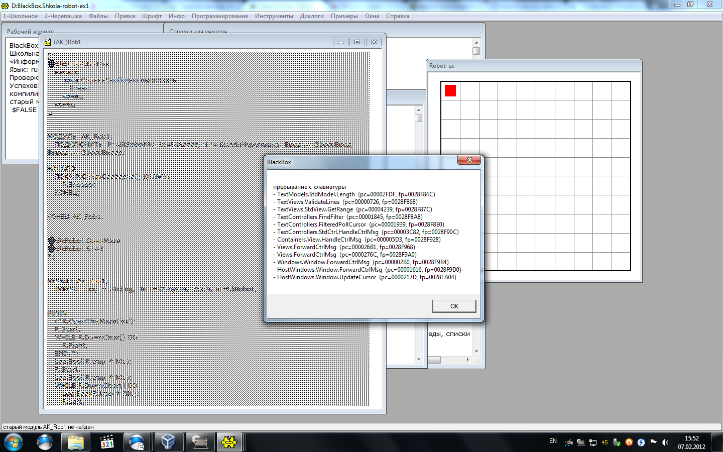 у интерпретатора хоть и есть свои плюшки (пошагово, показывает на какой команде, не надо модуль писать, следить за компиляцией, можно реализовать конструкции которых нет в кп (н-раз) и тд), но надо дорабатывать эти доп конструкции (процедур с параметрами например и др) и тогда теряется находка школьной сборки: единая среда+единый язык на всем протяжении курса (робо+черепах+кп+англ+рус).
