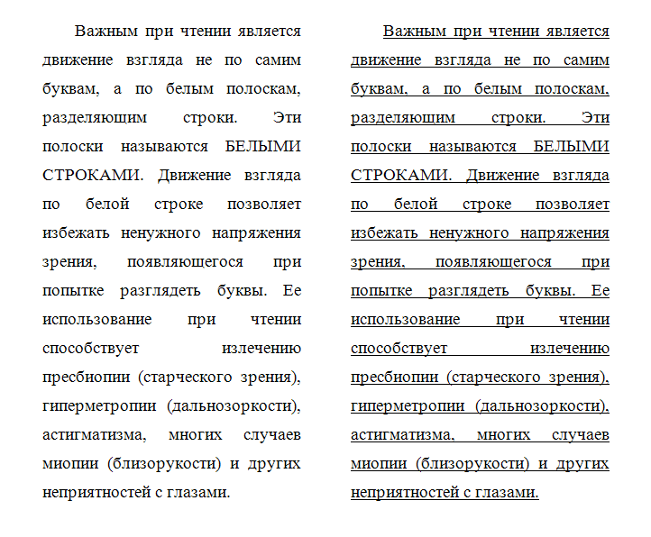 Один и тот же текст без подчеркивания и с подчеркиванием: