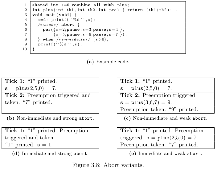 Полная форма оператора abort (прекращает исполнение вложенных операторов, если операторы завершают свою работу "самостоятельно" -- "вытеснения" нет, программа исполняется дальше) образует 4 варианта: