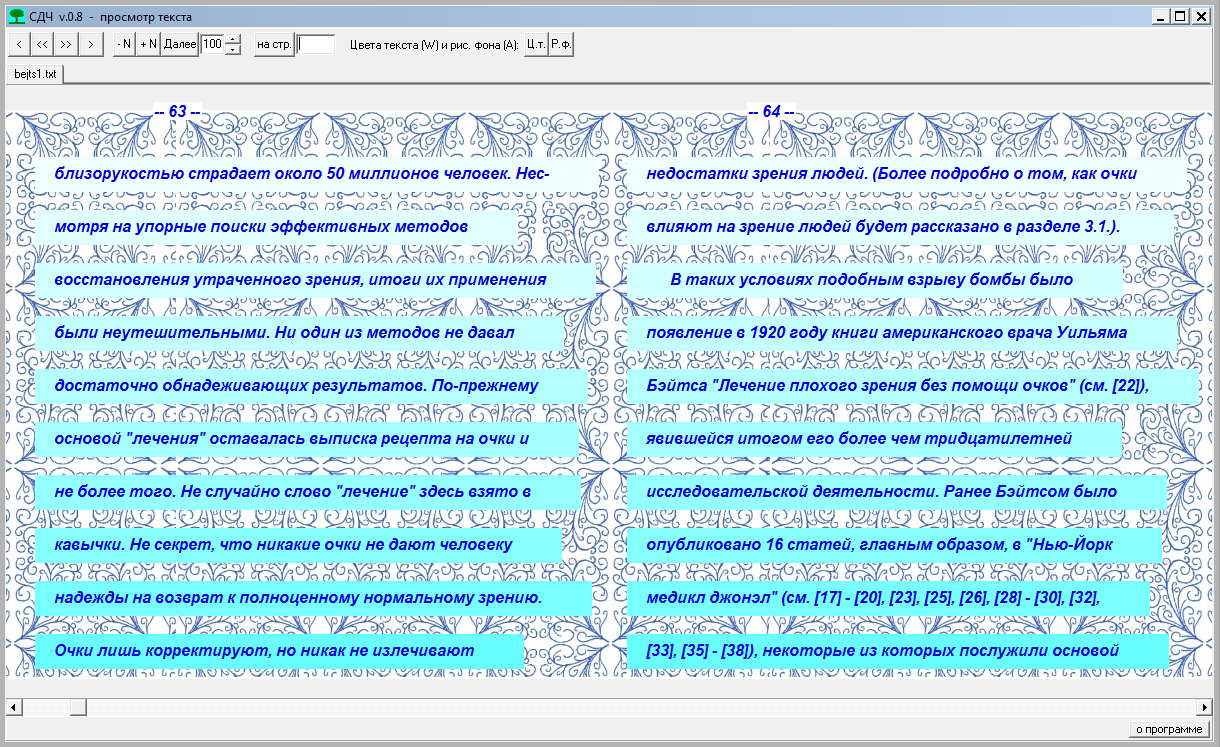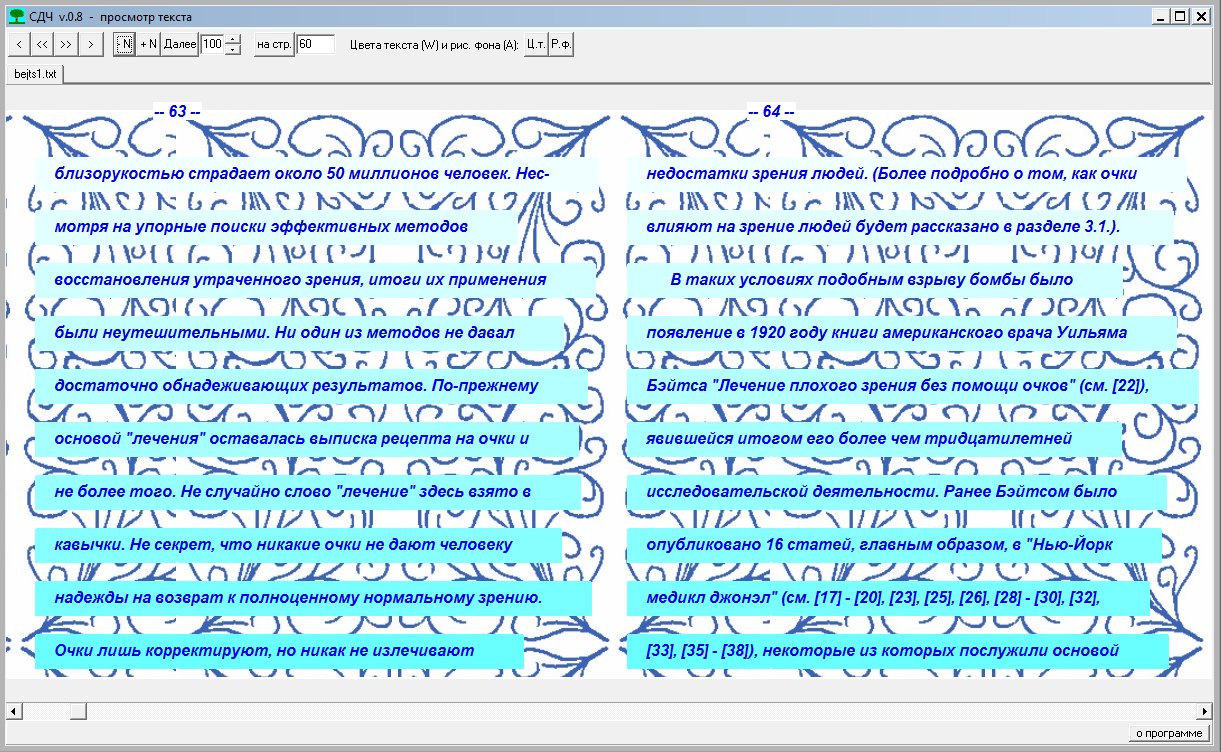 чтения в сторону уменьшения до приемлемого минимума напряжения глаз