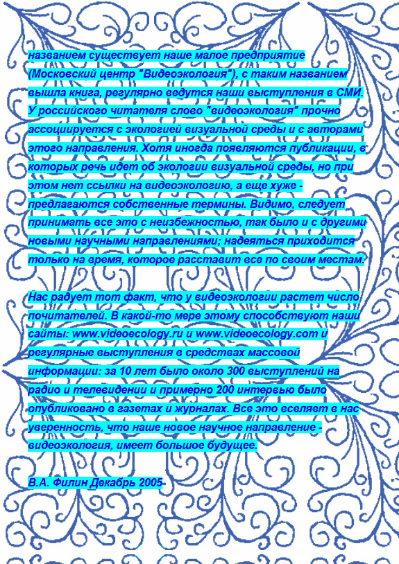 Т.к. у В.А. Филина нет четких указаний в области видеоэкологии