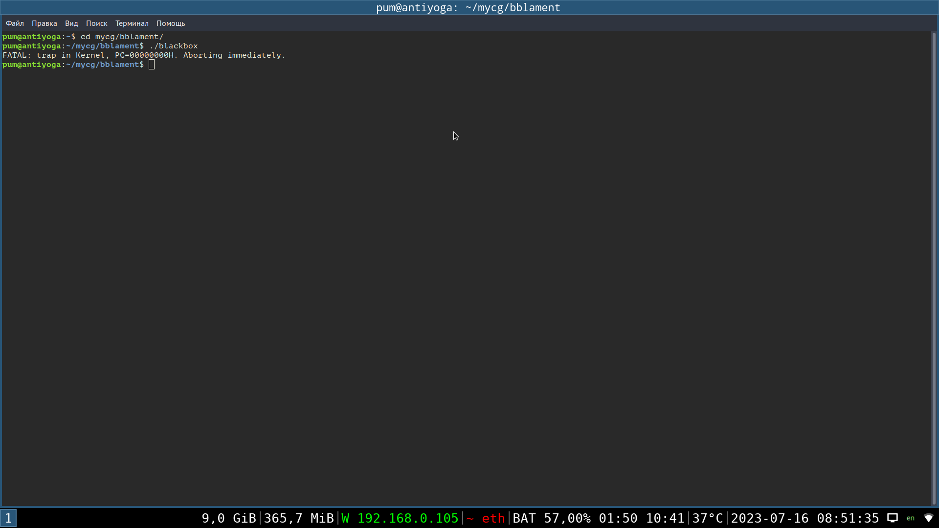 ах ты ж едрит твою напополам. чота я не подумал, что блокировать ctrl+c надо бы во всём memory manager — не только при сборе. а то вот удалось удачно сделать ^C прям посреди аллокатора, где евойные структуры тоже стали inconsistent.