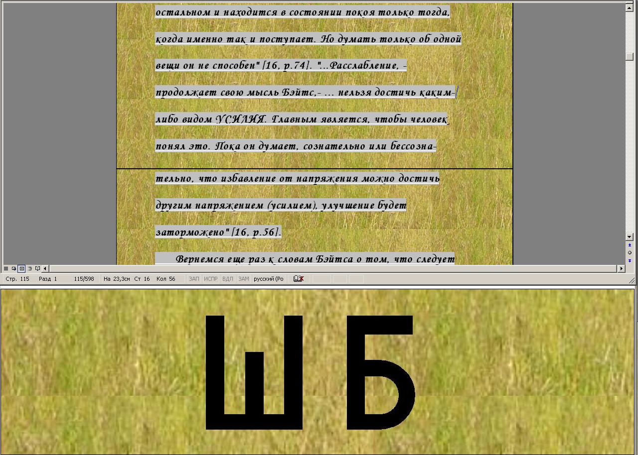 Для переключения внимания с отдельных букв на "белые строки" их цвет как