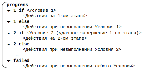 После выполнения любой ветви else выполняется ветвь failed, а затем завершается выполнение всей конструкции progress.