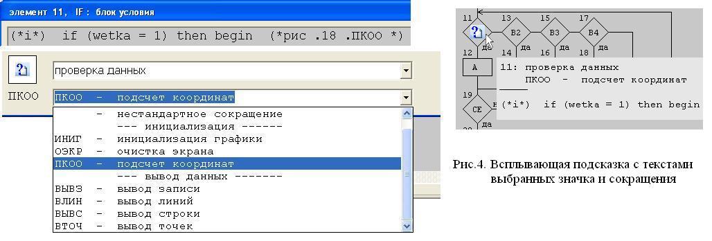 описания элементов процедуры по их пиктограммам и сокращениям.