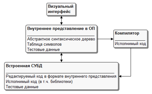 А в чем по-вашему разница между моделью программы для интерпретатора и моделью программы для структурного редактора? Мне кажется, что первое есть просто основная часть второго. См. рисунок: