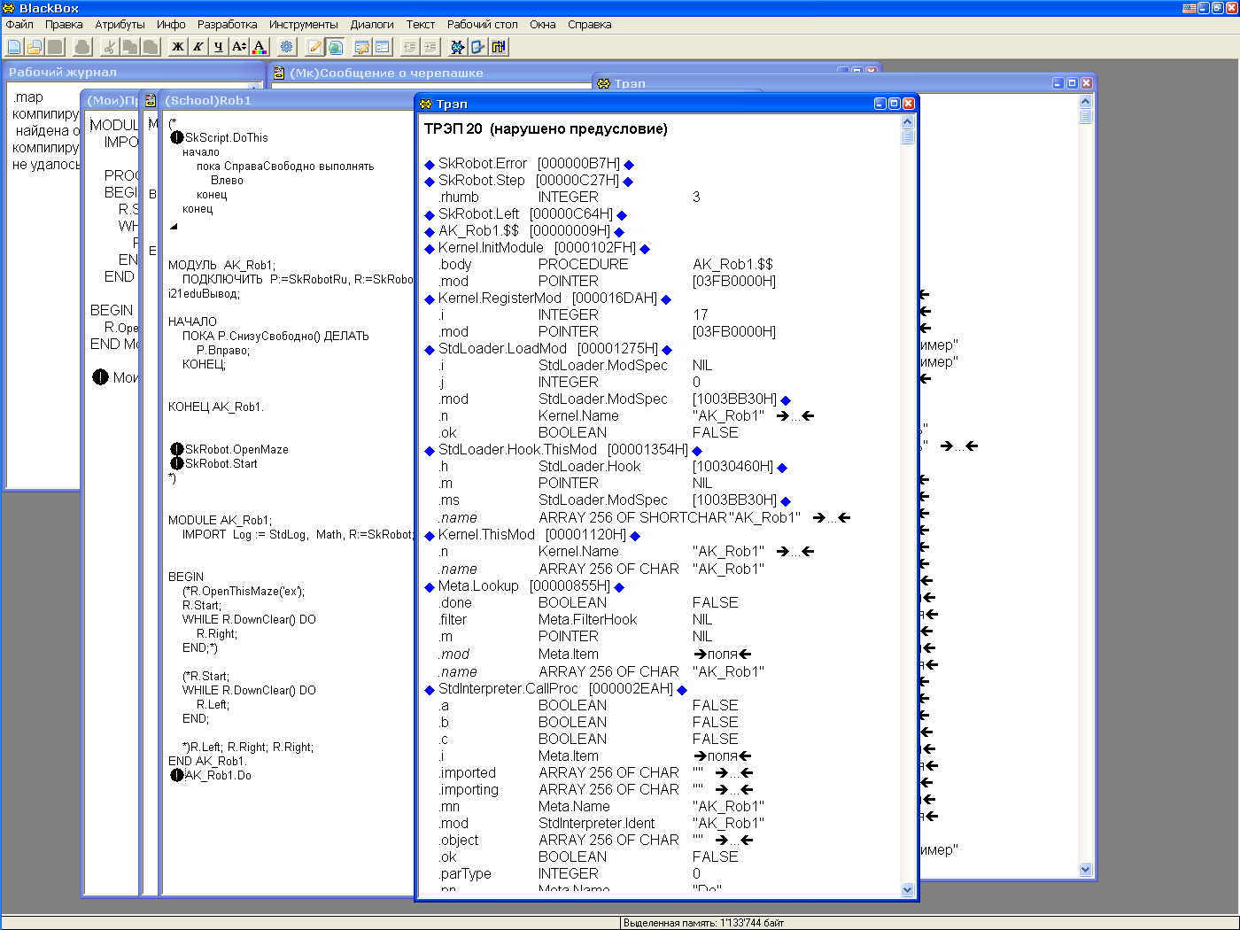 Похоже идея использовать один модуль для интерпретатора и для КП оказалась неудачной. Если бы был отдельный модуль робота для КП, в каждую команду можно было бы вставить предусловие и трап был бы всего в одном шаге от нужного места.