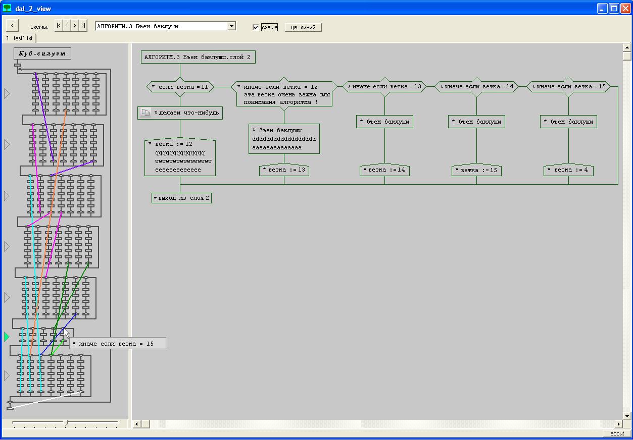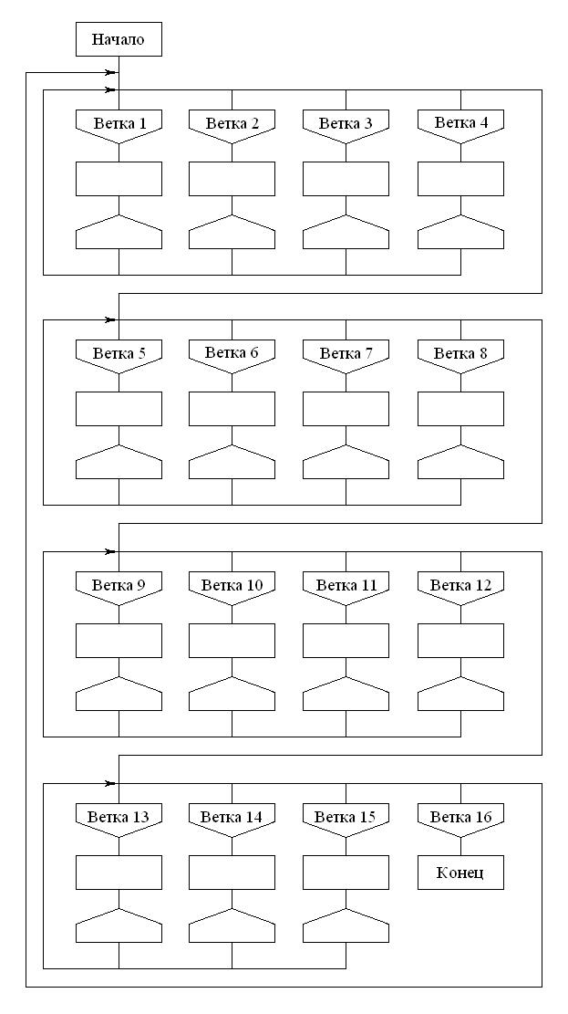отформатирована так, что ветки с одинаковыми номерами логических строк