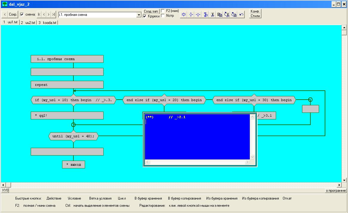 Флажок "F2" - переход к минимизированной форме схемы.